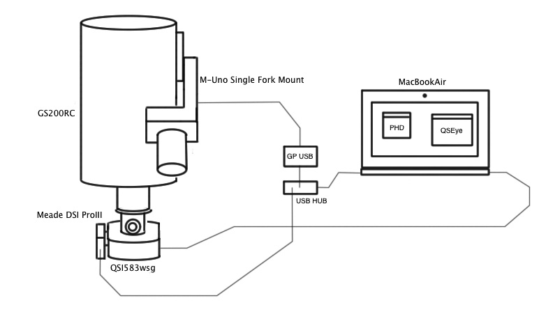 惑星撮影用のシステム構成です。惑星は非常に小さいため長焦点のCPC1100が威力を発揮しやすい撮影対象です。